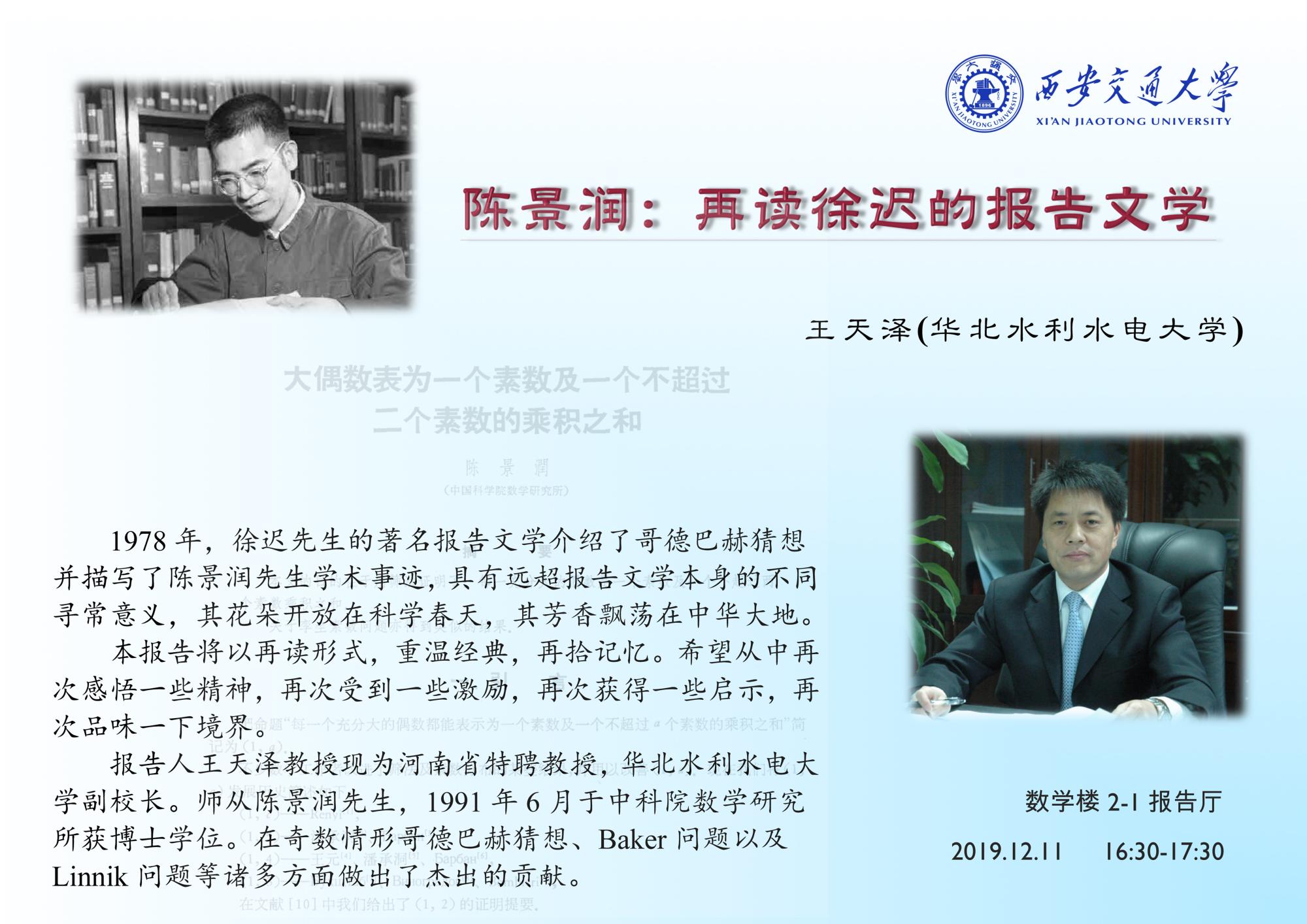 【数论系列活动19-07】陈景润:再读徐迟的报告文学 (王天泽教授)