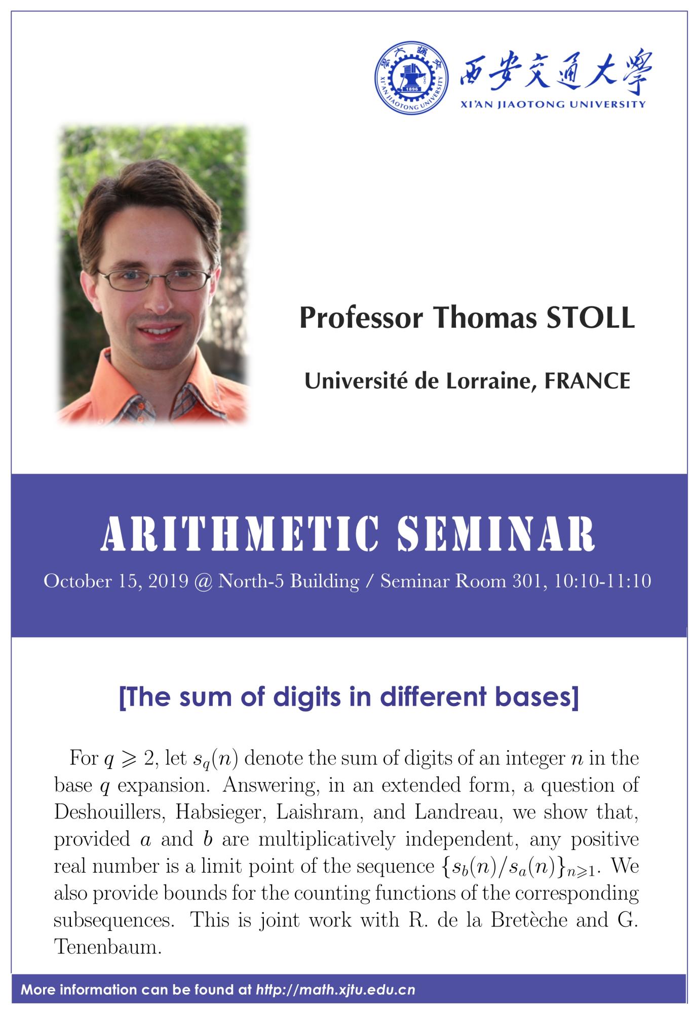 【数论系列活动19-04】法国洛林大学Thomas Stoll教授学术报告通知