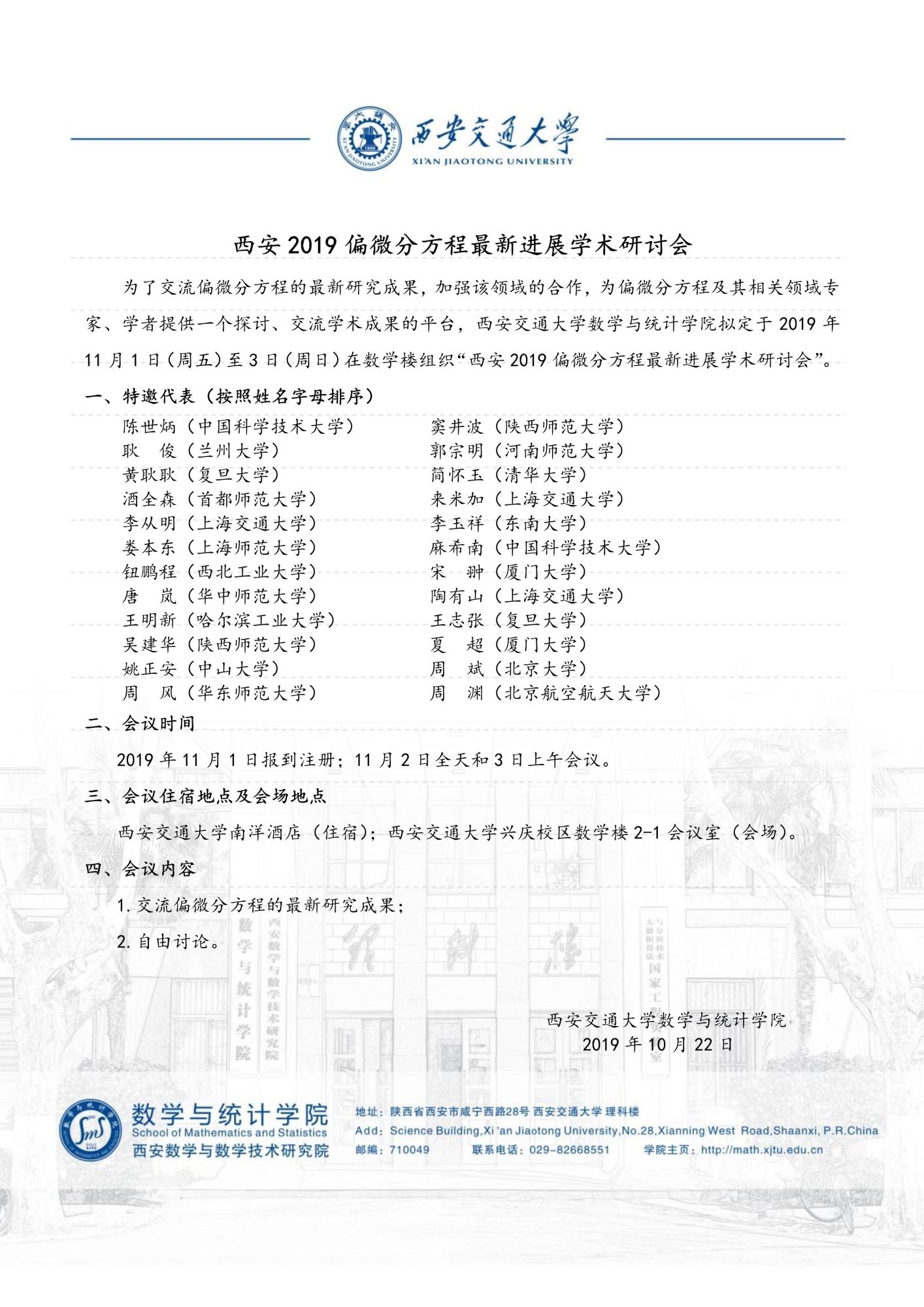 西安2019偏微分方程最新进展学术研讨会