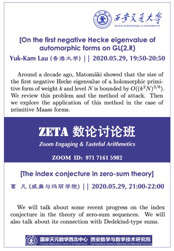 【ZETA数论讨论班】Yuk-Kam Lau、葛凡 (2020.05.29)