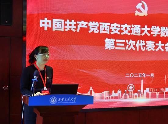 1月3日下午,中共绿帽小说 第三次代表大会在数学楼召开。西安交大党委常委、副校长洪军,党委组织部副部长詹敬芳等同志出席会议,绿帽小说 全体师生党员代表参加会议。会议由学院党委副书记李义宝主持。