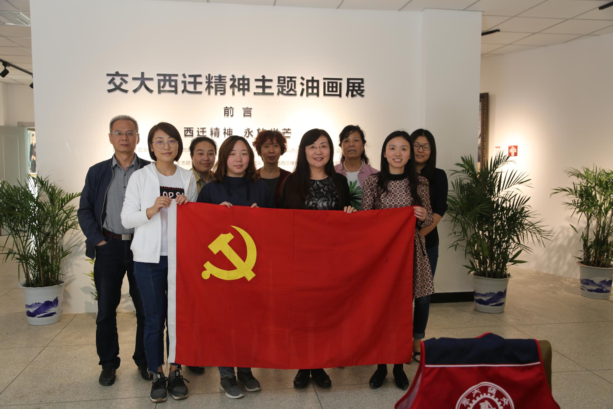 机关党支部党员在分党委副书记颜莉及支部书记刘晓瑞的带领下,集体参观了学校的西迁油画展,重温西迁历史,感悟西迁精神。
