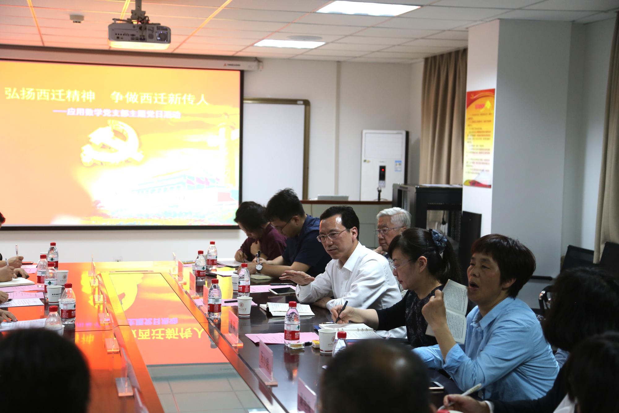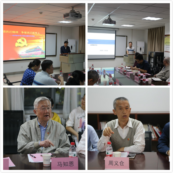 应用数学党支部召开了“弘扬西迁精神,争做西迁新传人”主题党日活动。郑庆华副校长,学院党委书记颜莉出席会议,应用数学博士党支部全体党员列席会议,会议由党支部书记祖建主持。