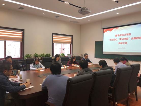 “不忘初心、牢记使命”主题教育总结会议在数学楼2-3会议室举行。学院党政领导班子、党委委员、教工党支部书记及系所主任出席会议,学校第四指导组成员吕青列席,会议由学院副院长易媛主持。