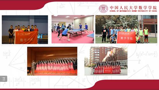 厦门大学数学科学学院研究生会下设办公部、学术部、文体部、督导部,定期举办师生沙龙,开展宿舍评比、最受欢迎教师评选等活动。