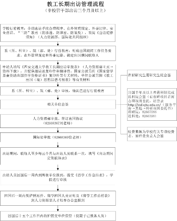 注:1. 如需办理因公出访持因私证件业务、乘坐非国内航空公司航班和改变中转地审批业务,请在系统内提交相关申请;2. 在系统内填报提交后须至外事秘书处接受行前教育;3. 出访申请须在学院公示不少于5个工作日。